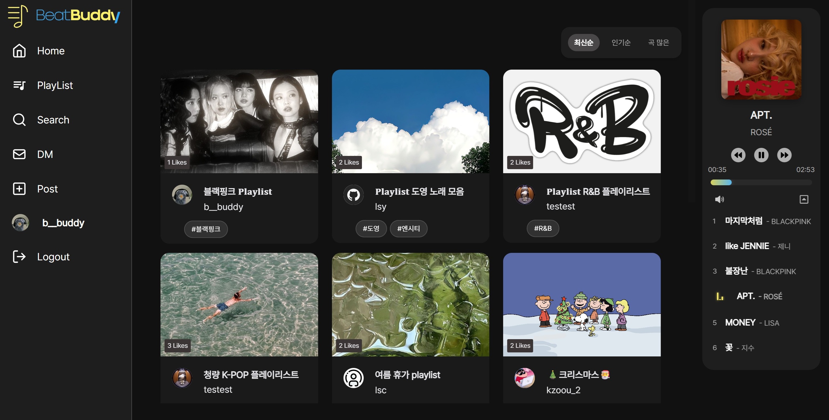 사용자 맞춤 플레이리스트와 SNS 기능을 결합한 음악 기반 소셜 플랫폼